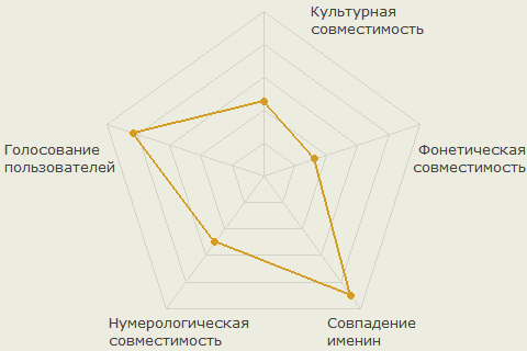 Совместимость по итогам голосования пользователей (84%). Большинство посетителей сайта считают, что имена Алина и Александр очень хорошо сочетаются.