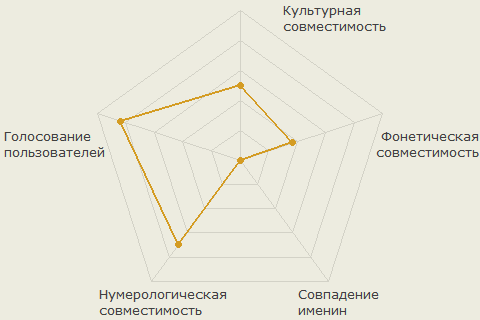 Совместимость по итогам голосования пользователей (84%). Большинство посетителей сайта считают, что имена Полина и Алексей очень хорошо сочетаются.
